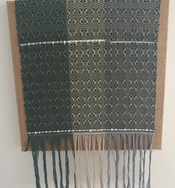 Leslie Mahler has been weaving for over 20 years. For most of that time, she worked on floor looms, creating a variety of items such as scarves, dishtowels, rugs, and wall hangings. Recently, her focus has shifted to learning tapestry weaving. She feels fortunate to be part of the Rhode Island Weaving Center, which has broadened her weaving horizons and allowed her to develop new skills.